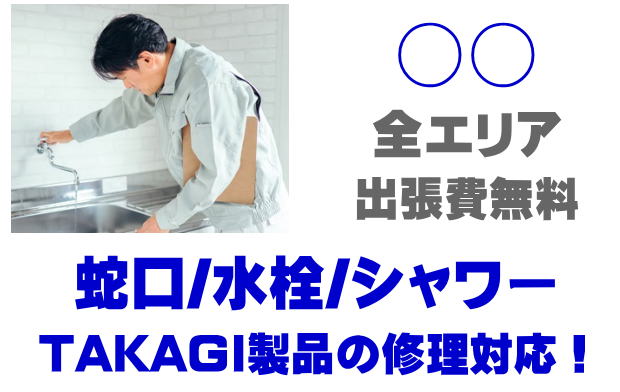 ○○で水栓メーカーTAKAGIの修理業者をお探しなら当社までお気軽にお問い合わせください。蛇口の水漏れ、シャワーの故障などタカギ製に関するトラブルなら何でもご相談ください。